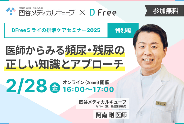このたび、泌尿器科専門医の阿南医師をお招きし、「頻尿・残尿」をテーマにオンラインセミナーを開催いたします。